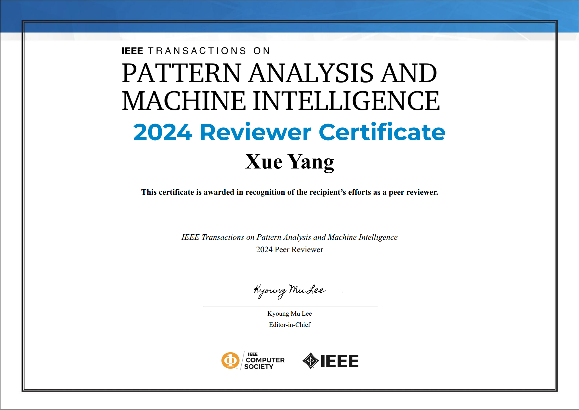 Received 2024 Reviewer Certificate from IEEE TPAMI